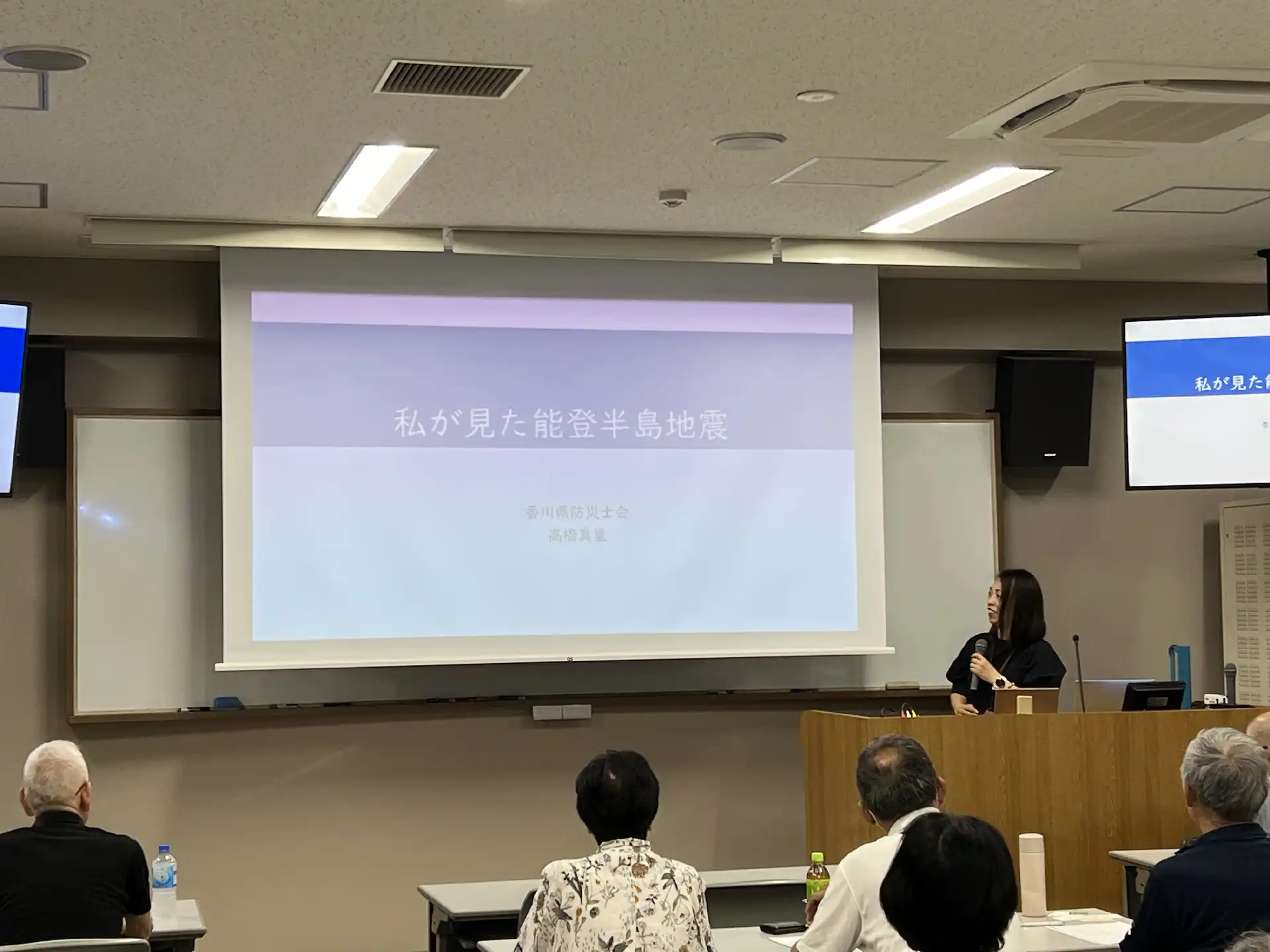 開催県を代表して長谷川会長から、連絡協議会の議長を務められた白木前会長からのあいさつの後、「私が見た能登半島地震」と題して、4月から日本防災士会の本部理事に就任された高橋真里前事務局長の講演がありました。